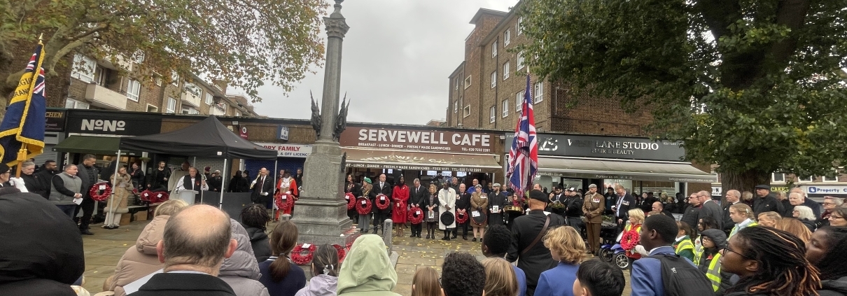 This year, Principal Marcus Huntley accompanied two students to represent the school at Southwark’s official borough service at the West Lane Memorial, just off Jamaica Road in Bermondsey. The service, led by Fr Mark Nicholls and joined by other faith leaders, brought together the local community to honour those who gave their lives for peace.